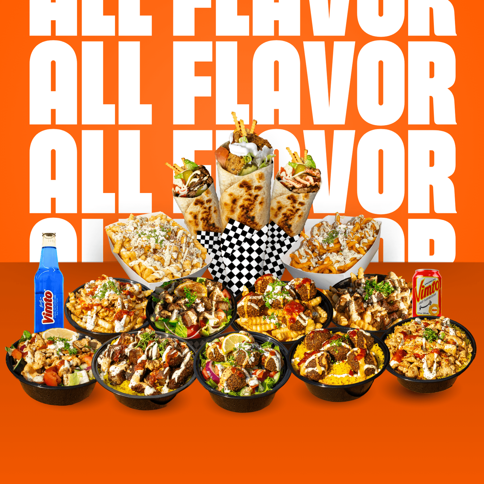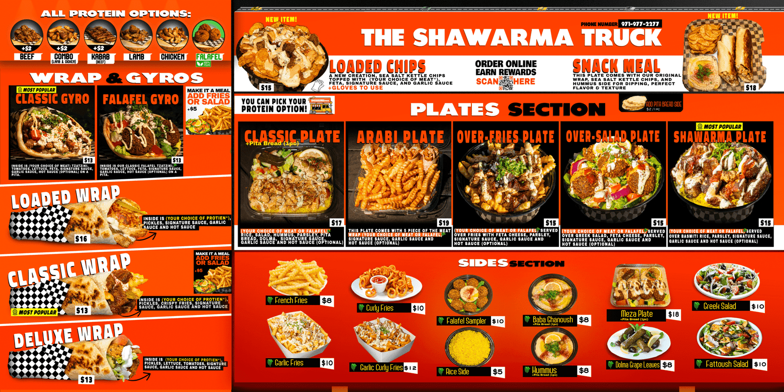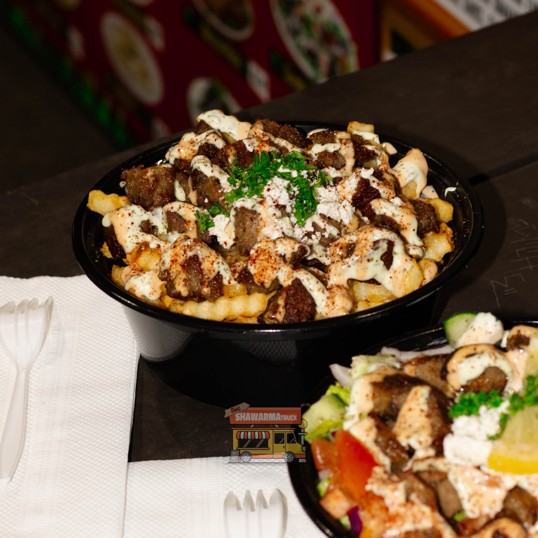 Our menu is built around bold Middle Eastern flavors — from our signature Chicken Shawarma Wrap to hearty Beef Shawarma Plates, Falafel Bowls, and loaded Shawarma Fries. Every item is made with halal meats, house-made sauces, and crisp vegetables.