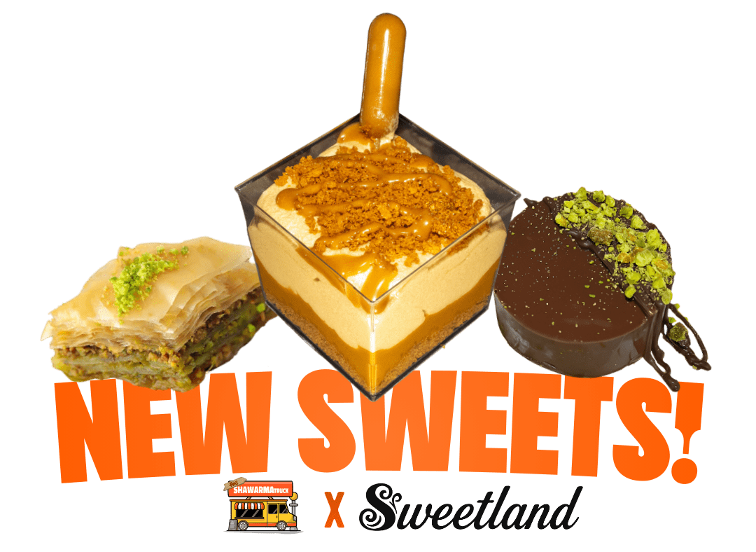 We now proudly serve Sweetland Desserts, featuring premium Middle Eastern favorites like Baklava, Pistachio Chocolate, and Lotus/Biscoff treats. A unique add-on you won’t find at most Portland food trucks — perfect for pairing with shawarma.
